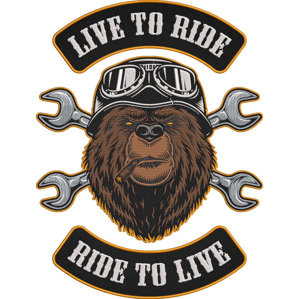 Live to Ride Ride to Live Bear Smoking Biker Patch – Large 3-Piece Embroidered Motorcycle Back Patch 33x43cm-13×17″